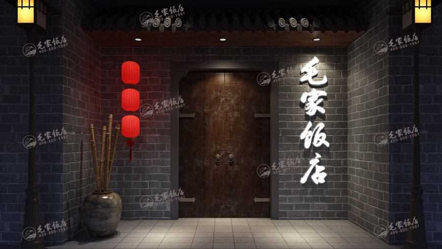 毛家饭店总部会为各门店量身制作版本设计图及施工图,保证各门店的装修风格统一性,并为各门店输出专业的设计与装修监理人员,避免各店在装修上的成本浪费。在传统的空间装修同时,毛家还专门设立了软装部,门店在硬装结束后,软装的营造会为整个就餐空间富有更强的观赏性。